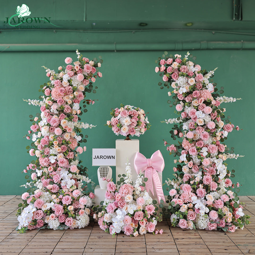 Aisle & Centerpiece & Open-Ended Flower Arch in Pink/White/Green