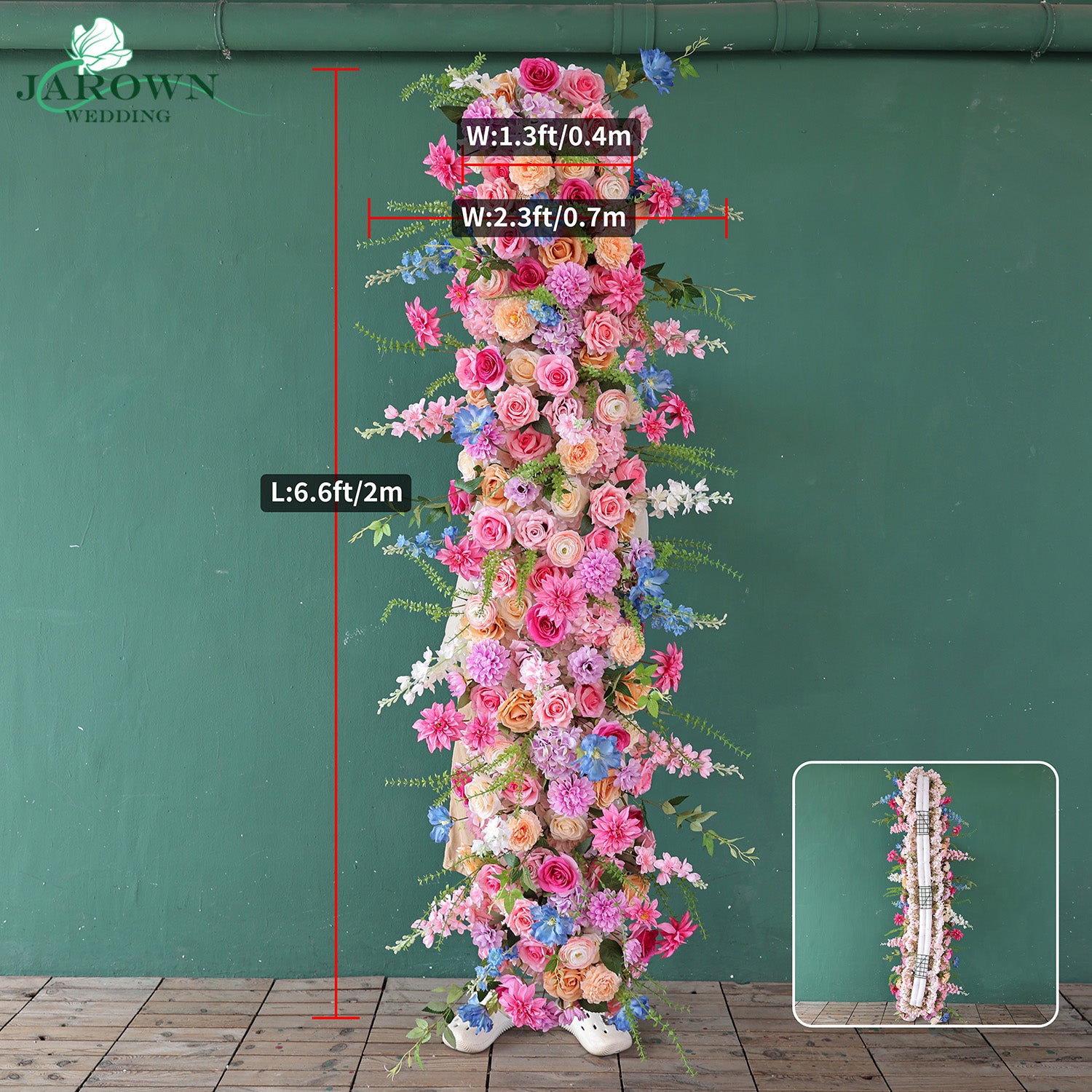 • Another important note for flowers: You may notice that in some setups in our online store, there are two flowers in length A, but when the 2 pcs flowers are combined into 1 pcs, the length will be shorter than (A+A). Because in the actual practice, 2 pcs flowers combined into 1 pcs flowers will exist some extent of 'squash', it makes the visual more harmonious. We believe all professional event planners can understand the issue easily, but as a professional company, we have to mention this point to our customers who never do any setups before.In a word, all the customers will receive the actual product with the size in your order, promised. In many cases, we will exceed the size you ordered. In 12 years, we have never had customers feedback about cutting corners.