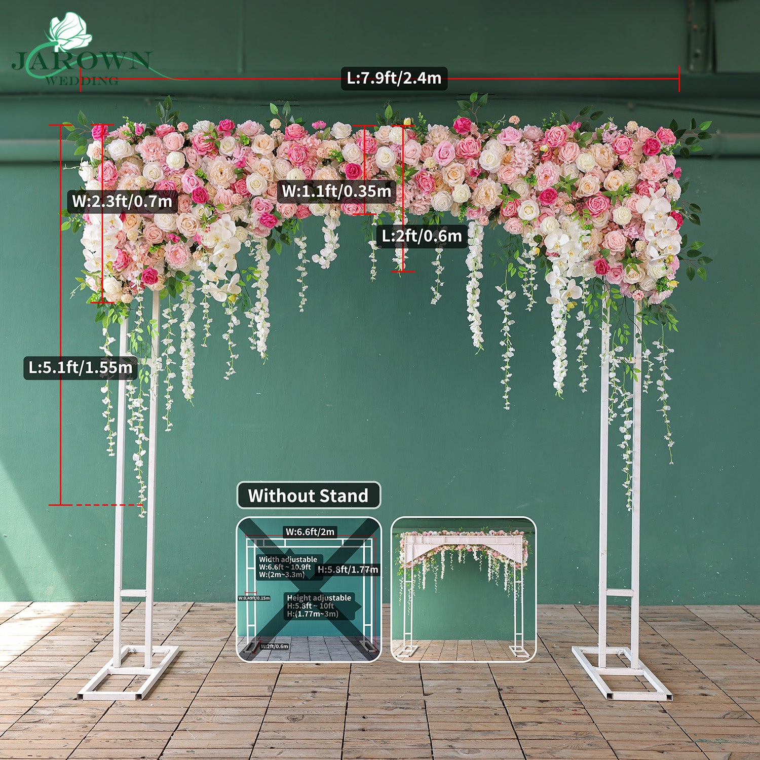 - Another important note for flowers: You may notice that in some setups in our online store, there are two flowers in length A, but when the 2 pcs flowers are combined into 1 pcs, the length will be shorter than (A+A). Because in the actual practice, 2 pcs flowers combined into 1 pcs flowers will exist some extent of 'squash', it makes the visual more harmonious. We believe all professional event planners can understand the issue easily, but as a professional company, we have to mention this point to our customers who never do any setups before.In a word, all the customers will receive the actual product with the size in your order, promised. In many cases, we will exceed the size you ordered. In 12 years, we have never had customers feedback about cutting corners.