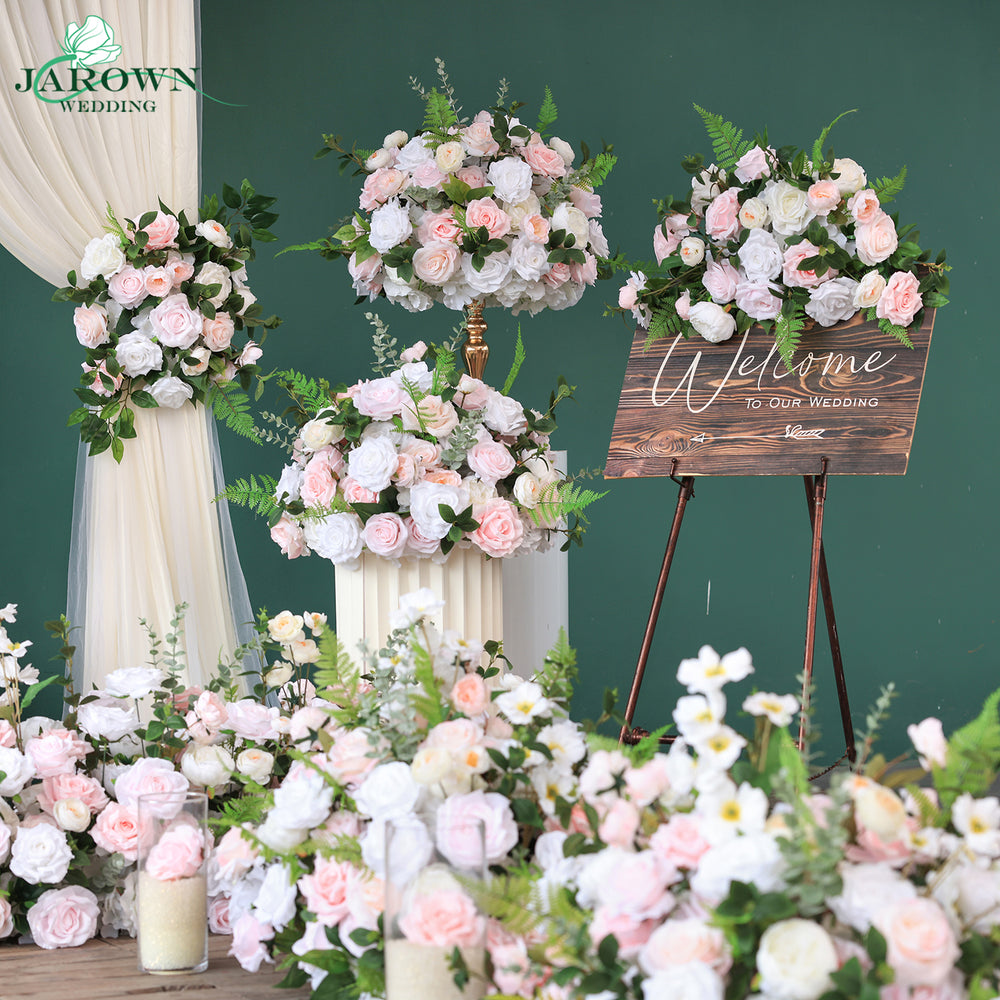 Aisle & Centerpiece & Sign & Backdrop Flower in White/Pink/Green